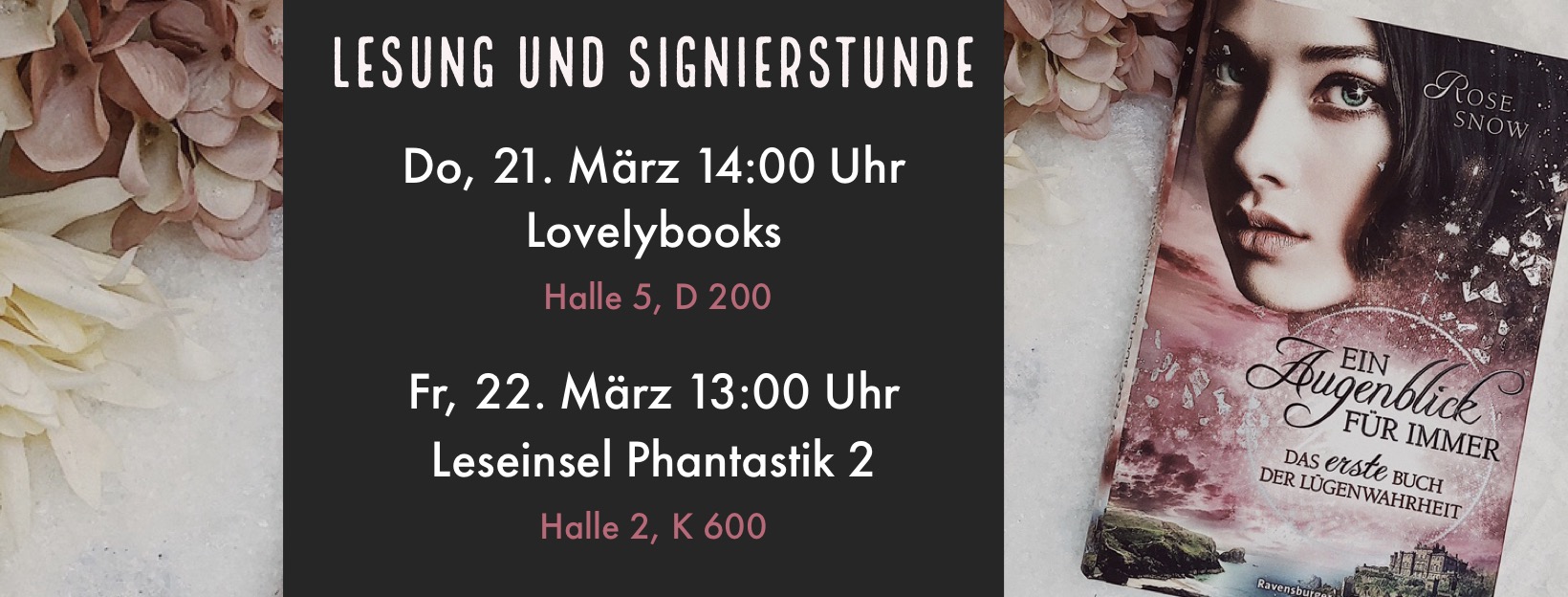 Wir lesen am Donnerstag um 14 Uhr am Lovelybooks-Stand – und am Freitag um 13 Uhr könnt ihr uns auf der Leseinsel Phantastik 2 treffen!